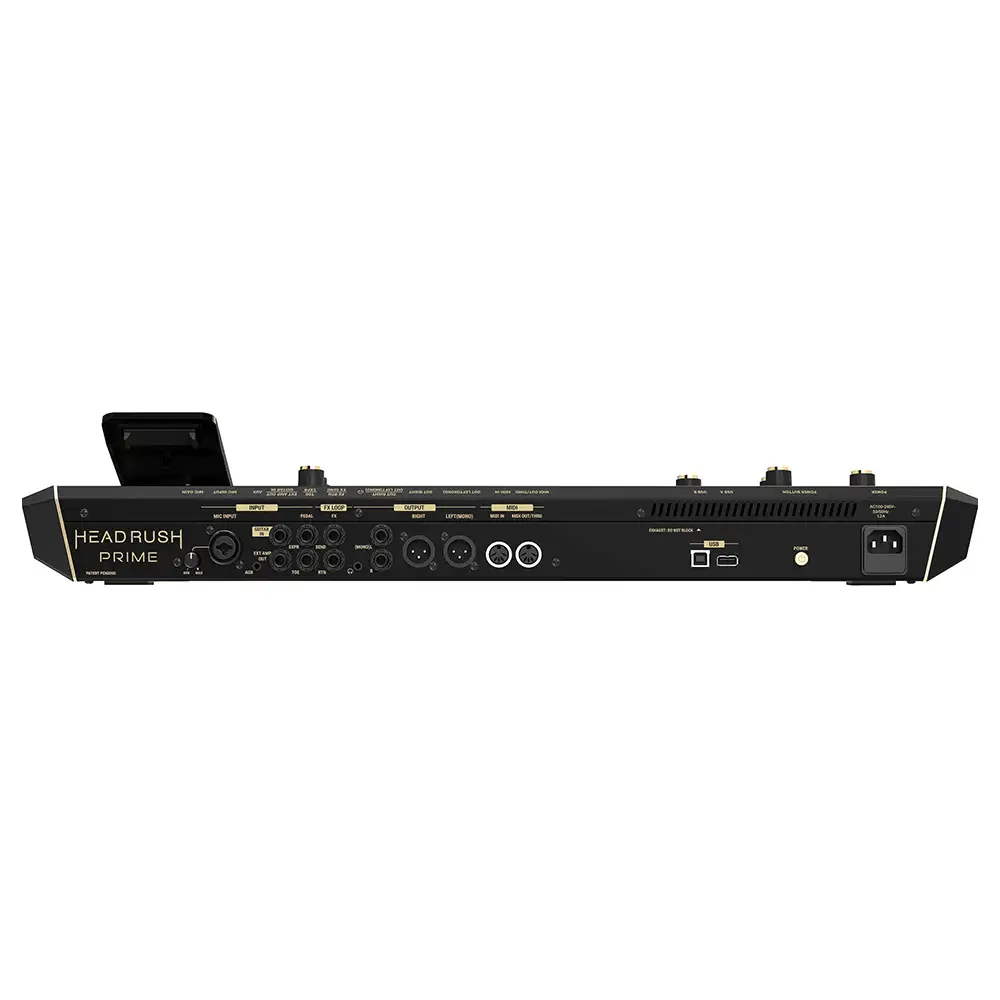 The HeadRush Prime assimilates seamlessly into your current rig with all the connections you need to handle any performance situation. The rear panel of Prime is packed with inputs and outputs, including a ¼-inch input for guitars, Combo XLR+¼-inch input with switchable 48V phantom power for microphones, (2) XLR outputs with switchable ground lift, (2) ¼-inch TRS outputs switchable between amp or line level, a ⅛-inch headphones output, and 5-Pin MIDI input and output connections. The Prime also features an onboard ¼-inch stereo FX loop to integrate pedals and outboard gear at any point in your signal chain and allows for advanced integration into your rig via the four-cable method. Additionally, there is a ¼-inch external amp output that can be used to change between clean and dirty channels or toggle other footswitch settings on a connected traditional guitar amplifier. In addition to the onboard Wi-Fi and Bluetooth audio connectivity, the Prime also features a USB-A input for importing/exporting files directly from/to a USB drive, as well as connecting external USB-MIDI controllers. The HeadRush Prime unites your existing equipment while opening a world of new sonic possibilities.