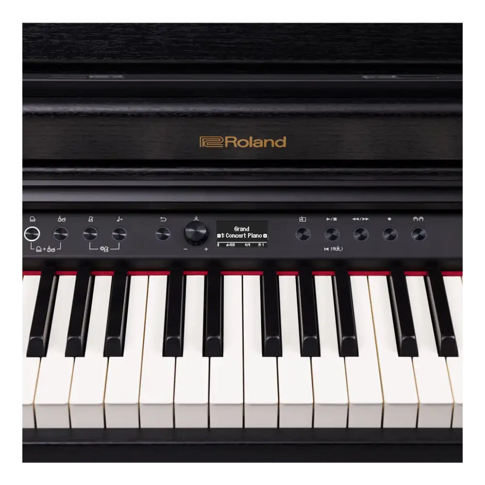 If you’re drawn to the classic contours of an acoustic piano, the RP701 will appeal to you. Influenced by the award-winning design of Roland’s high-end LX and HP series, the sophisticated cabinet blends curves and straight lines, with slim front legs that complete the visual statement. Available in four finishes, the RP701 blends into a wide variety of room styles. Try soothing and subtle dark rosewood, or a light oak finish with its fusion of elegant oak grain and fashionable greige accents. Or just keep it classic with the striking white or contemporary black options.